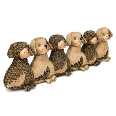 Boudin de porte composé de 6 petits chiens aux couleurs alternées, en tissu de brocart lesté de sable.