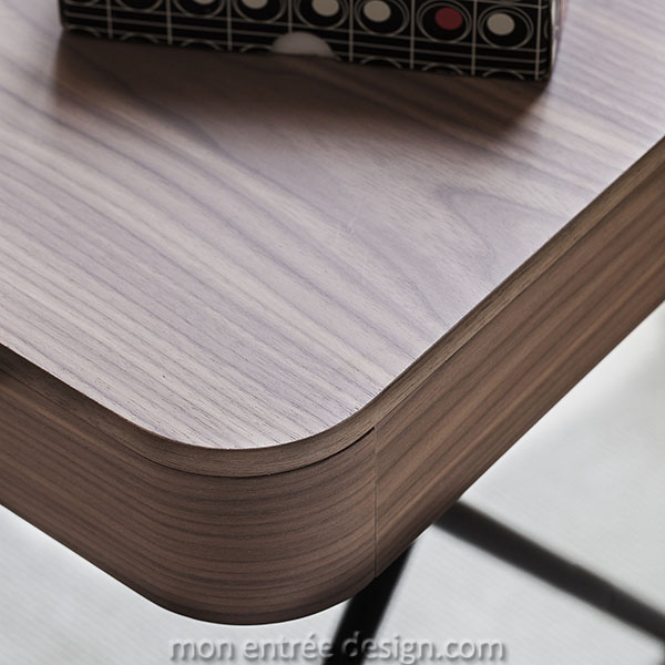 Le bureau Cosimo en noyer canaletto est une pure merveille illustrant le talent et la quintessence artistique de la maison Adentro : le placage de la structure en MDF est parfaitement réalisé, ne laissant que subtilement deviner la présence des deux tiroirs latéraux.