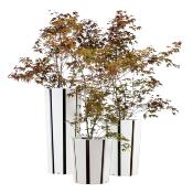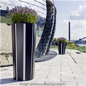 Ce pot de fleurs de forme d'une hauteur conséquente en aluminium peut être utilisé en intérieur comme en extérieur.