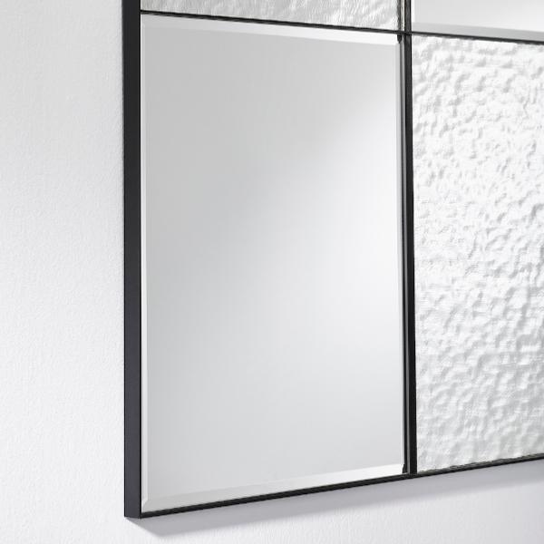 Le grand miroir design Finestra de la société Deknudt est une combinaison de travail d’argenture et d’inspiration trouvée dans l’architecture. L’argenture du verre texturé produit un matériau étonnamment esthétique. Combiné avec le cadre noir raffiné et les parties claires du miroir, ce miroir rectangulaire évoque des images à la fois de cloisons de vitrail vintage et d’architecture moderne. Le reflet dans le miroir est divisé en réflexions floues et claires. Le contraste entre ces deux images est étonnant.