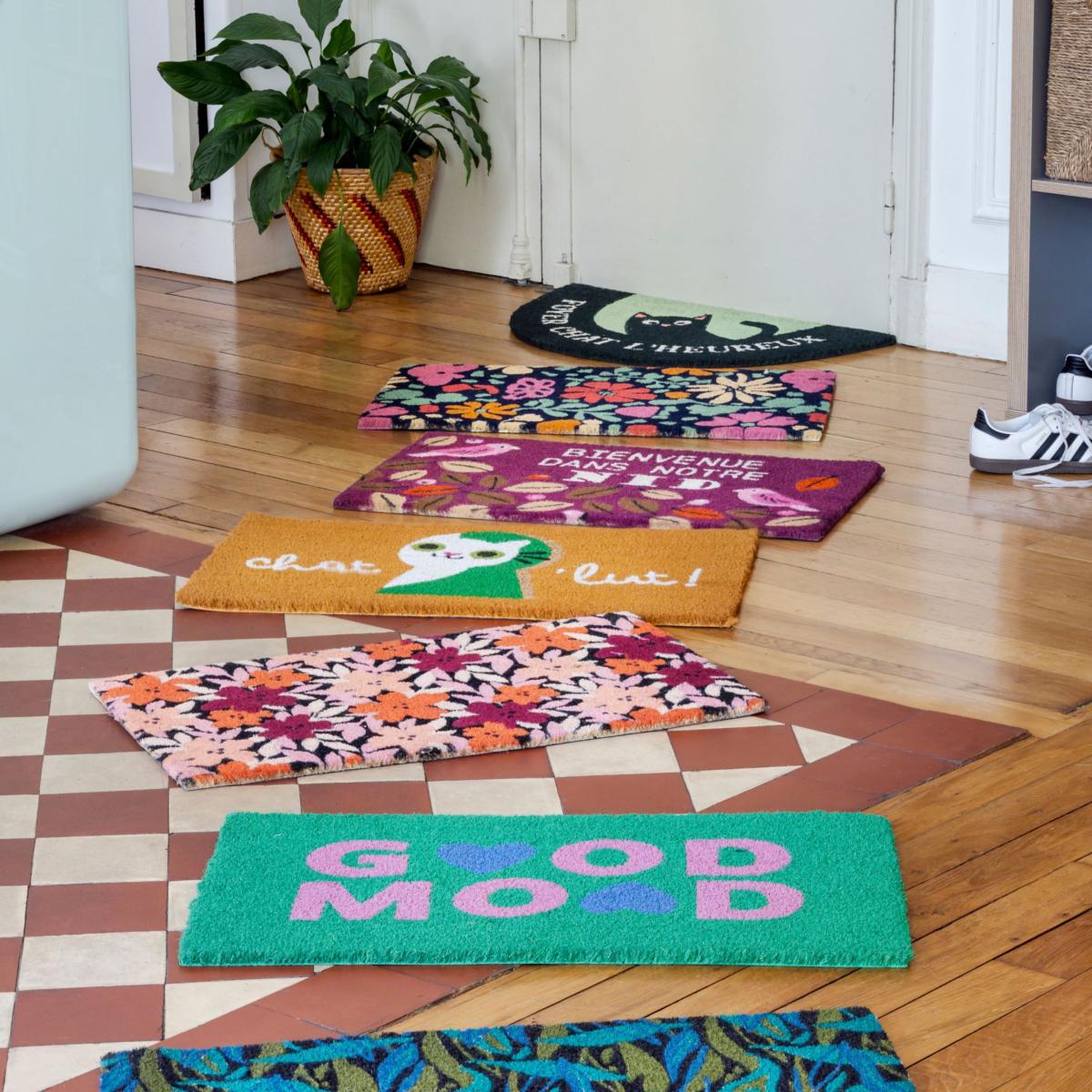 Tapis paillasson coco extérieur coloré et fleuri "Jardin d'hiver " - 40cm x 70cm de la marque Derrière la porte
