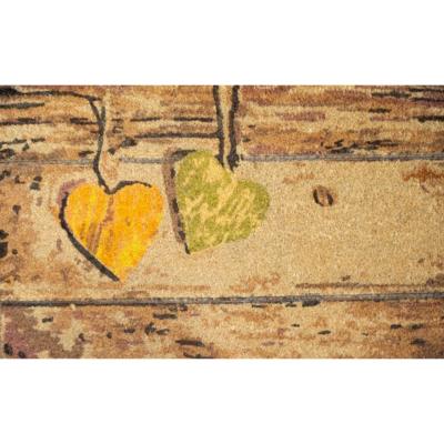 Akzente Coco Design Paillasson Coco / Vinyle 45 x 75 cm au motif naturel de coeurs en bois