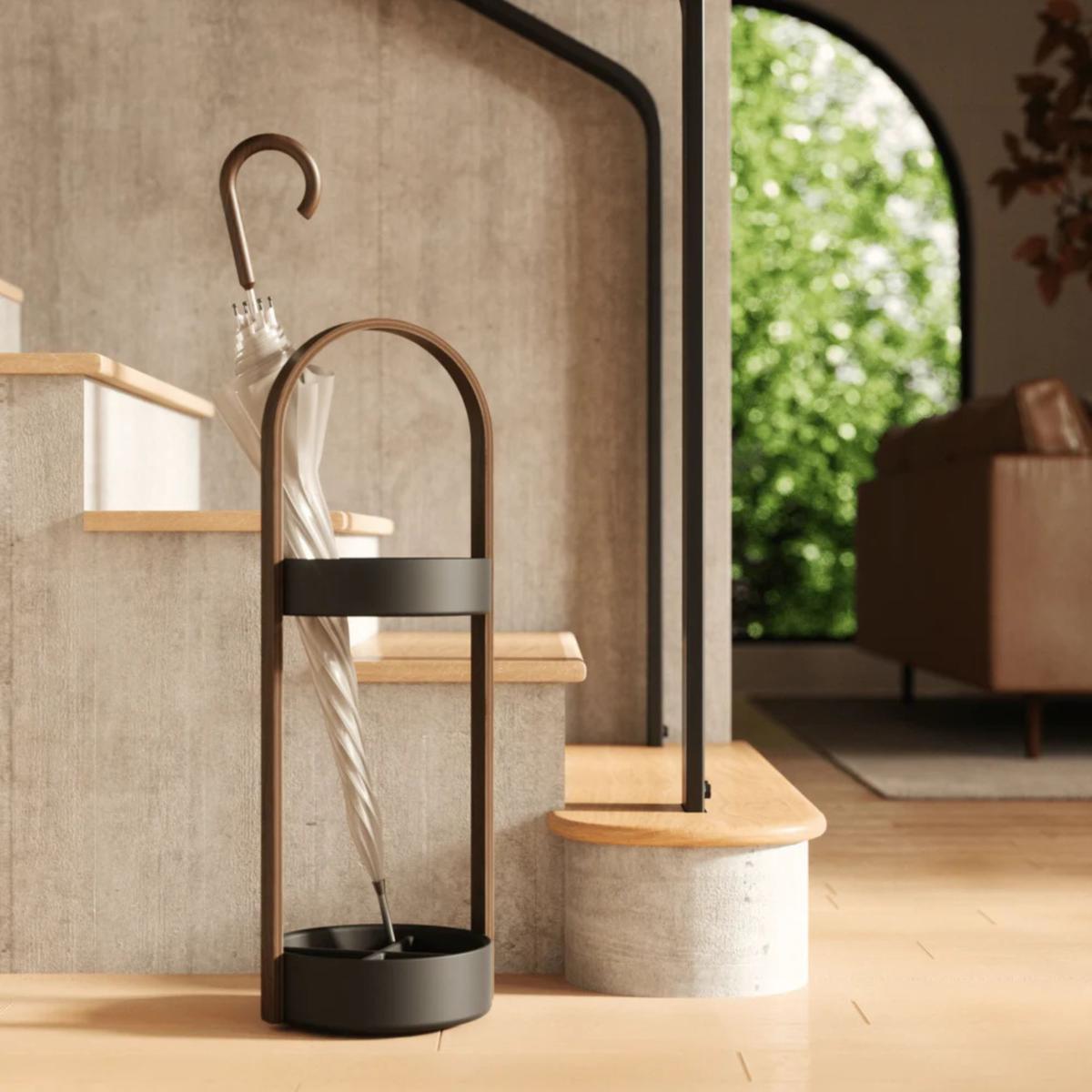 Porte Parapluie en Bois - Noir et Noyer - Umbra