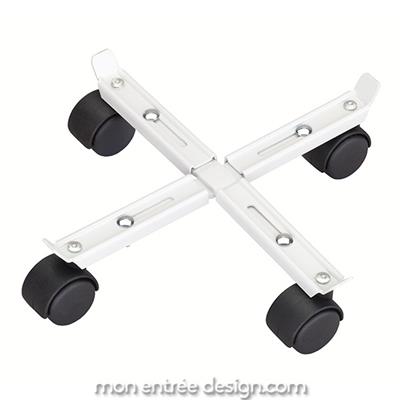 Omega 25. Support roule-pot de fleurs réglable en acier peint gris clair. Structure en croix. 80kg de charge.