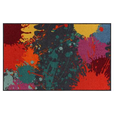 Son dessin style tableau contemporain, avec de grandes tâches colorées comme des éclats de peinture projetée avec passion, vous ferait presque oublier qu'il s'agit d'un tapis d'entrée antidérapant et absorbant.